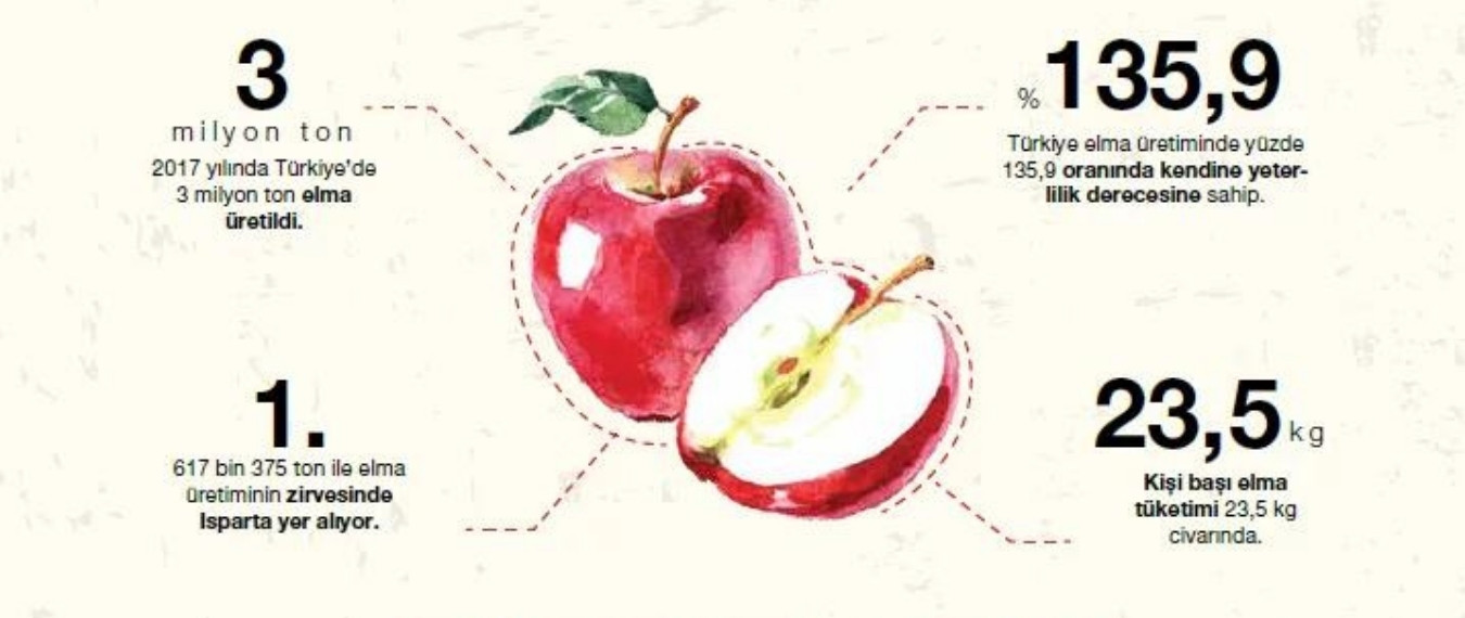 2017 yılında Türkiye’de 3 milyon ton elma üretildi.